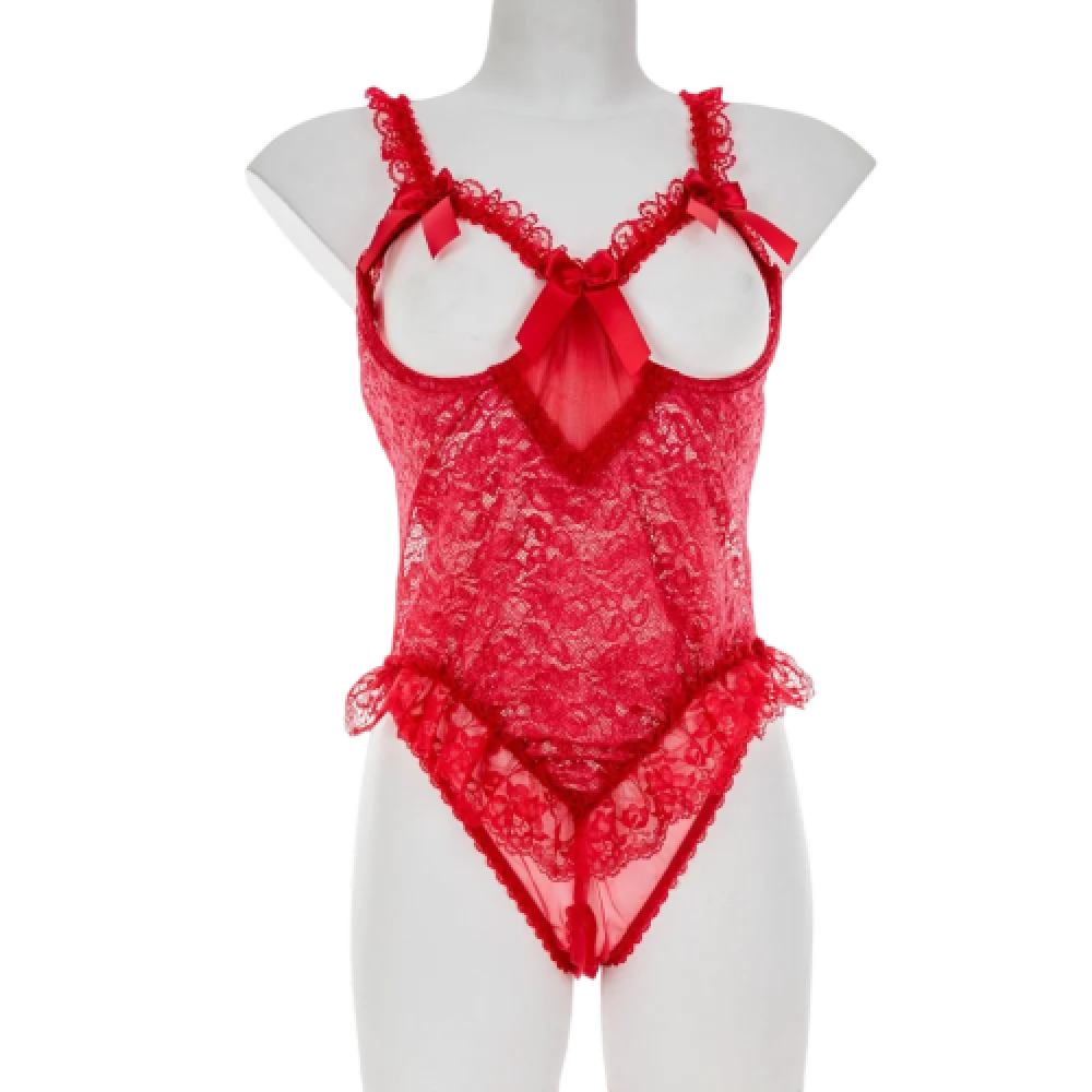 تميزي في سهرتك الخاصة واستمتعي بإطلالة جذابة وجريئة مع تيدي مايوه من خامة الدانتيل الأحمر من لا دي دا لنعومة وأنوثة لا مثيل لها.