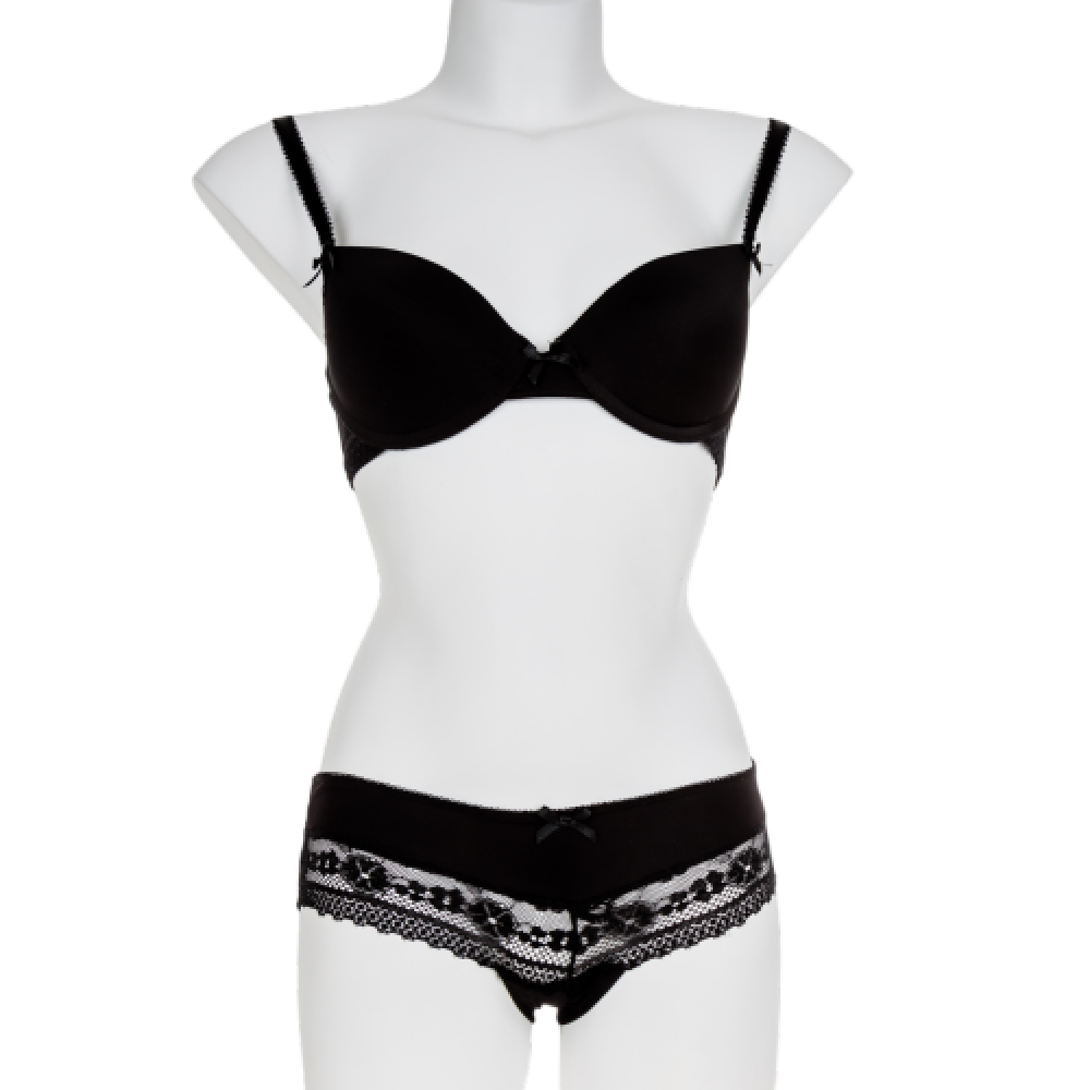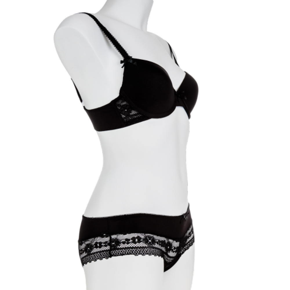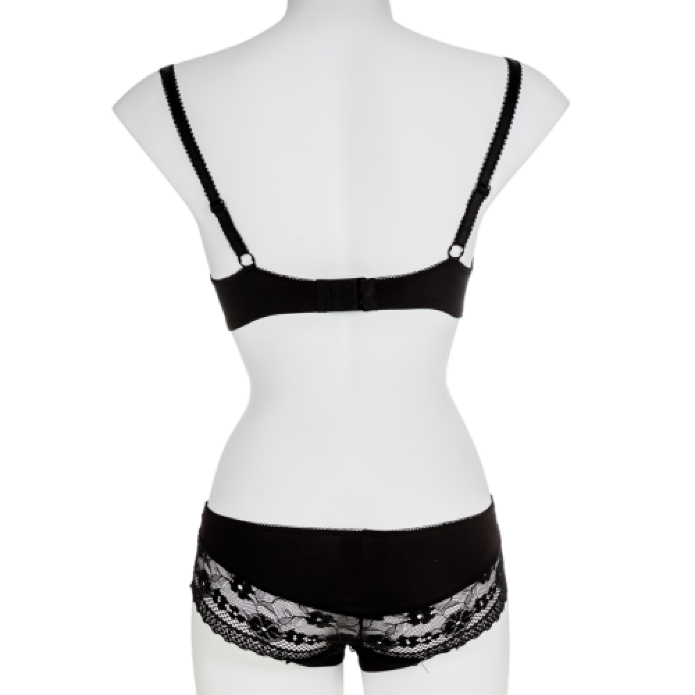 مواصفات طقم برا وبانتي مزيّن بدانتيل باللون الأسود: