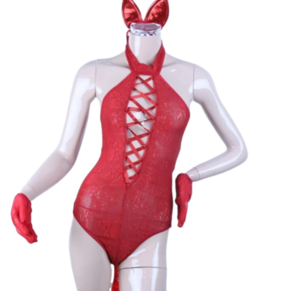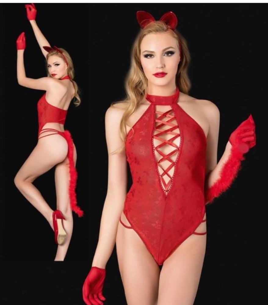 أضيفي لمسة من الجاذبية والجرأة مع طقم لانجري تنكري قطة باللون الأحمر الناري ليبرز جمال قوامك بتصميم جريء وتفاصيل مثيرة.