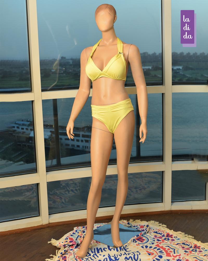 تألقي في إجازتك الصيفية، ونوّعي خياراتك مع مايوه سباحة قطعتين باللون الأصفر الزاهي لإطلالة أنيقة ورقيقة على الشاطئ أو حمام السباحة.